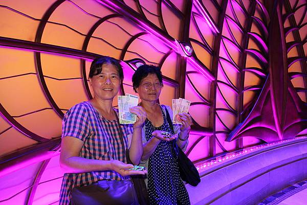 那天進賭場我們才知道賭桌除了有各種玩法外,還有分賭金多少的。我現在已忘了當時我們換了多少籌碼玩,只記得前幾桌看到的都是100港幣起跳,嚇得我跟品涵想打退堂鼓,後來看到有50港幣起跳的,而且是很簡單的看骰子的數字押大小不用花太多腦筋的那種,我們便靠過去玩。一開始我們有輸有贏,後來連贏了幾把,在連贏的那幾次有個老兄,他是直接押數字贏了十倍,但他老兄超鎮定,我跟品涵叫得比他還大聲,請媽媽過來押一下感染一下賺錢的氣氛,她們一點興趣也沒有,真解嗨。
