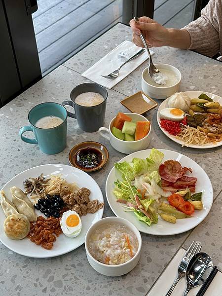 早餐的供應時間很長,從早上7點到中午12點,如果退房那天沒有特別安排,可以睡晚一點再當早午餐吃,對旅客來說是很彈性的時間安排。晚餐有大人的海尼根可以喝到飽,早餐則是有小朋友喜歡的鋁箔包可爾必思與綜合果汁可以開心喝,可說是大人、小孩的需求都顧到了。餐廳的座位大致分兩區,一區靠近餐檯、一區靠近戶外,晚上沒有景可以看,可以坐靠近餐檯的位子,白天建議坐靠近戶外的位子,一早就接受花蓮的陽光與空氣的洗禮。