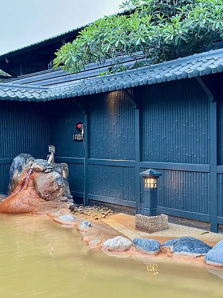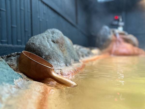 「二子.泉旅」有男、女裸湯與湯屋可以選擇,入住房客可免費使用男、女裸湯,湯屋則是另外付費使用。我傍晚5點多去使用裸湯,這時間多數人是已經泡完,或是準備去吃晚餐,因此我來使用的時候幸運包場,也徵得工作人員的同意才拍照。裸湯是露天的,通風的空氣泡起溫泉來更舒適。黑牆黑瓦與日式庭院燈,則營造出日式氛圍,充滿度假感。泉源出水處的水溫高達43度,泡溫泉時大家要留心,不要靠太近反而不舒服。「二子.泉旅」也有大眾池,不過會依當天入住的人數,超過60人才會開放,這部份可以入住時再跟工作人員確認。